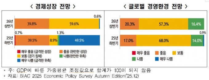 BIAC은 무역·통상과 지정학 충격이 단기 변수가 아니라 중장기 비용 요인으로 인식되기 시작했다고 해석했다. 작년 한 해 미국 관세 조치 등 통상 충격은 산업·국가별 협상 과정에서 불확실성이 일부 완화됐고, 지정학 리스크로 급등했던 에너지 가격도 비(非)OPEC 국가 증산 등으로 하향 흐름을 보였다고 설명했다. BIAC은 이와 관련해 "기업들이 경영환경의 불확실성으로 인한 고비용 구조에 적응하며 대응력을 확보중"이라고 평가했다.