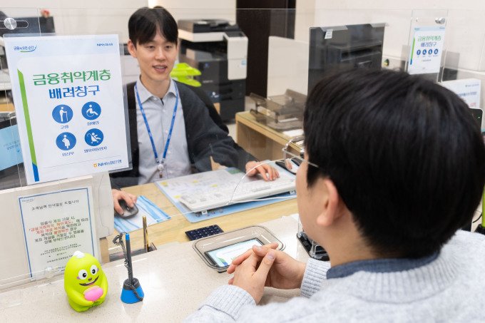 [서울=뉴스핌] 채송무 기자 = NH농협은행 본점영업부에서 직원이 '금융취약계층 배려창구'를 통해 고객에게 금융상담을 제공하고 있다. [사진=NH농협은행]2026.01.21 dedanhi@newspim.com