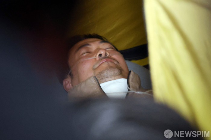 [서울=뉴스핌] 정일구 기자 = 통일교·공천헌금 '쌍특검' 수용을 촉구하며 단식 7일 차를 맞은 장동혁 국민의힘 대표가 21일 오전 서울 여의도 국회 로텐더홀 단식 농성장에서 이준석 대표를 만나 대화를 나눈 뒤 자리에 눕고 있다. 2026.01.21 mironj19@newspim.com