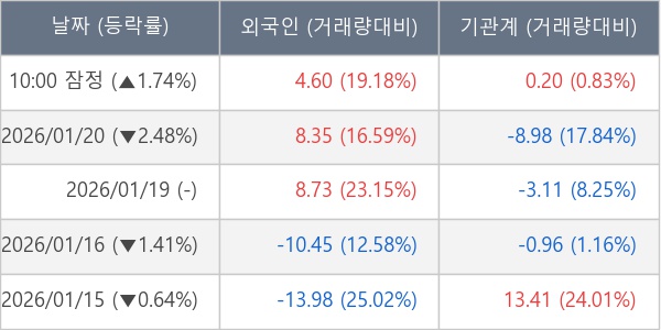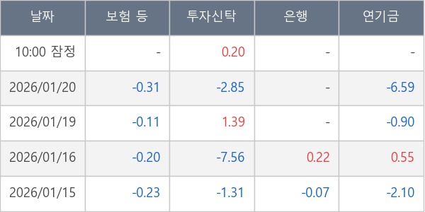 [표] 주요 기관별 순매매량 (단위 만주)