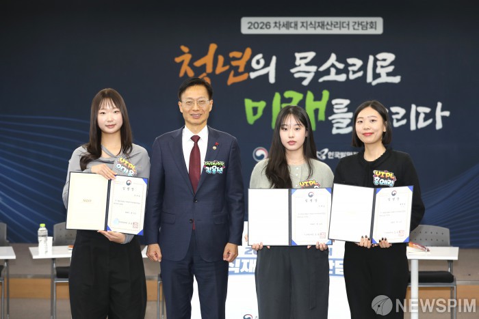 [서울=뉴스핌] 김용선 지식재산처장이 21일 오후 서울 강남구 한국지식재산센터에서 열린 2026년 차세대 지식재산리더(YIPL, Young Intellectual Property Leaders) 간담회에서 YIPL 임원단 임명장을 수여한 후 기념촬영을 하고 있다. [사진=지식재산처] 2026.01.21 photo@newspim.com