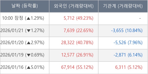 [표] 외국인ㆍ기관 순매매량 (단위 주)
