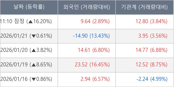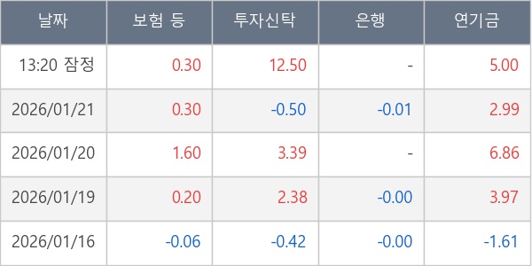 [표] 주요 기관별 순매매량 (단위 만주)