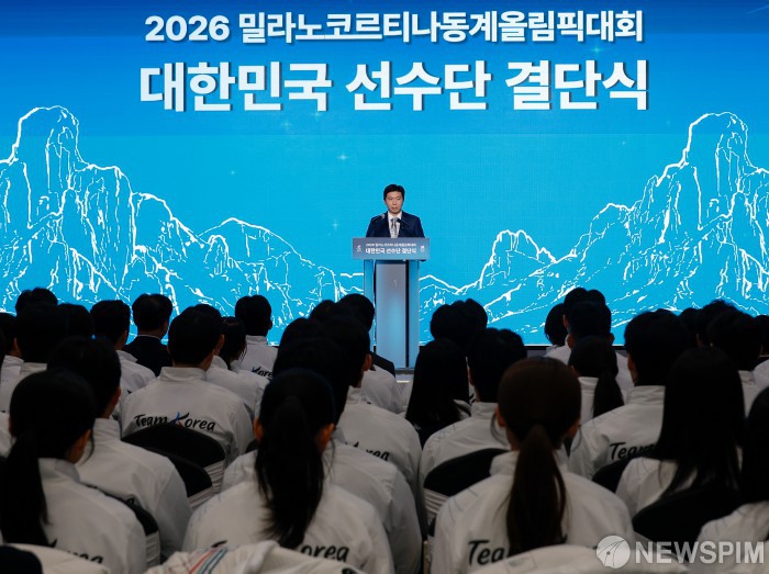 [서울=뉴스핌] 류기찬 기자 = 유승민 대한체육회장이 22일 오후 서울 송파구 올림픽파크텔에서 열린 ‘2026 밀라노 동계올림픽 선수단 결단식’에서 개식사를 하고 있다. 2026.01.22 ryuchan0925@newspim.com