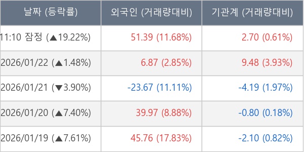 [표] 외국인ㆍ기관 순매매량 (단위 만주)