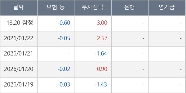[표] 주요 기관별 순매매량 (단위 만주)