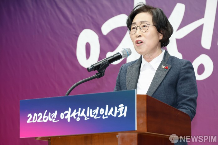 [서울=뉴스핌] 류기찬 기자 = 김삼화 한국양성평등교육진흥원장 이 23일 오후 서울 중구 은행회관에서 열린 2026년 여성신년인사회에서 개회사를 하고 있다. 2026.01.23 ryuchan0925@newspim.com