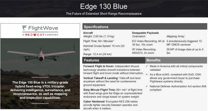 특히 레드 캣은 미 국방부가 검증한 안전하고 사이버 보안이 강화된 드론 목록인 '블루 UAS' 생태계 내에서 제품을 생산한다는 점에서 전략적 우위를 점하고 있다. 블루 UAS는 특별 허가 없이 구매할 수 있는 드론을 제공하는 프로그램으로, 틸(Teal)의 골든 이글과 틸 2는 이미 블루 UAS 승인을 받았으며, 최신 기종인 블랙 위도우와 플라이트웨이브 엣지 130 블루는 현재 검토 단계에 있다.
