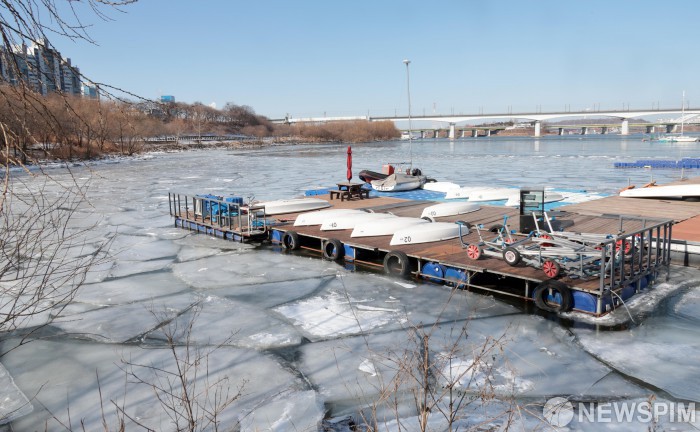 [서울=뉴스핌] 이길동 기자 = 연일 북극한파가 이어지고 있는 25일 서울 여의도 요트탑승장 주변 한강이 결빙돼 있다.2026.01.25 gdlee@newspim.com