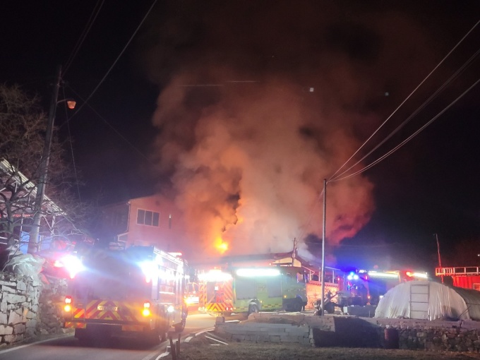 25일 밤 경남 거창군 위천면의 한 주택에서 밤늦게 불이 나 2시간여 만에 꺼졌다.[사진=경남소방본부] 2026.01.26