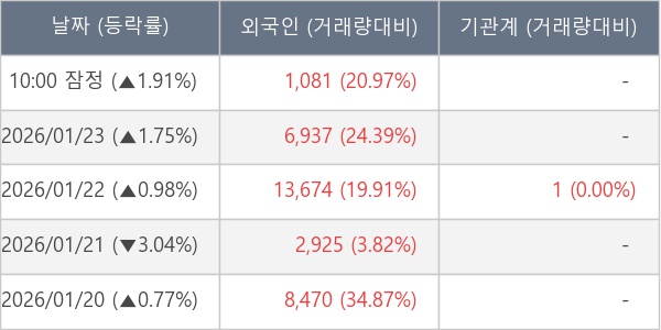 [장중수급포착] 아티스트스튜디오, 외국인 11일 연속 순매수행진... 주가 +1.91%