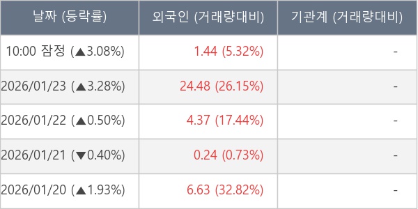 [표] 외국인ㆍ기관 순매매량 (단위 만주)