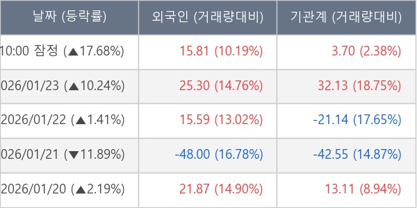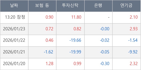 [표] 주요 기관별 순매매량 (단위 만주)