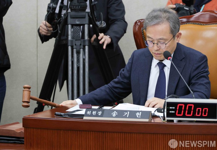 [서울=뉴스핌] 윤창빈 기자 = 송기헌 국회 정치개혁특별위원장이 26일 서울 여의도 국회에서 열린 정치개혁특별위원회 전체회의에서 의사봉을 두드리고 있다. 2026.01.26 pangbin@newspim.com