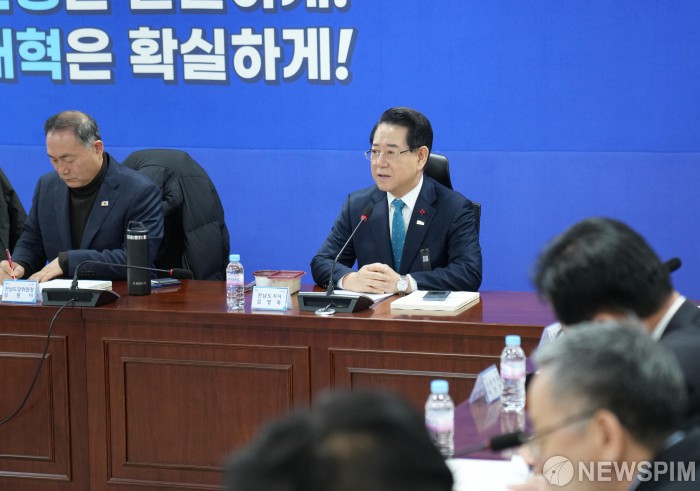 [무안=뉴스핌] 조은정 기자 = 김영록 전남도지사가 27일 서울 국회의원회관에서 열린 광주·전남 행정통합 특별법 검토 제4차 간담회에서 지역 국회의원들과 특별법에 대해 논의하고 있다. [사진=전남도] 2026.01.27 ej7648@newspim.com