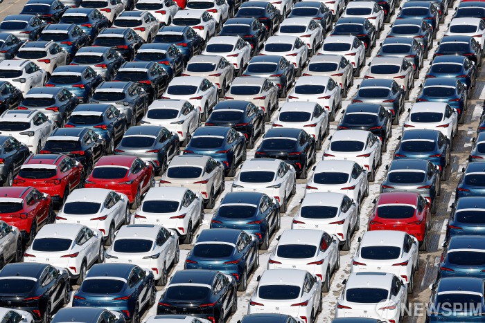 [인천=뉴스핌] 류기찬 기자 = 도널드 트럼프 미국 대통령이 한국 국회의 입법 절차 지연을 이유로 자동차 등에 대한 관세를 15%에서 25%로 다시 인상한다고 밝혔다. 사진은 27일 오전 인천 중구 인천항에 수출용 자동차가 주차되어 있다. 2026.01.27 ryuchan0925@newspim.com