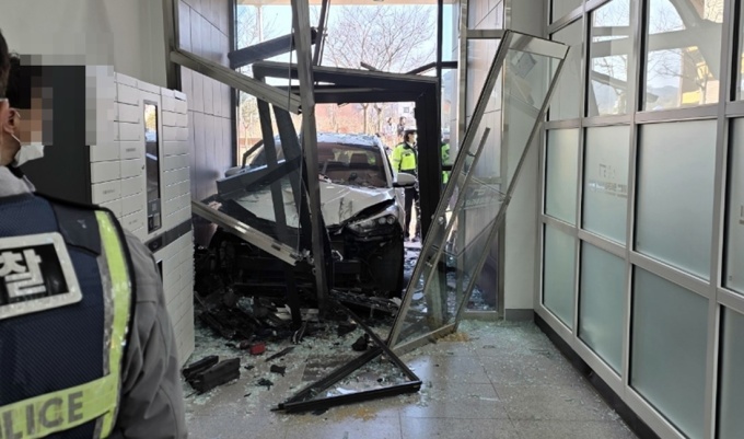 김천 율곡도서관에 70대 운전 SUV 차량 돌진…50대 남성 2명 부상