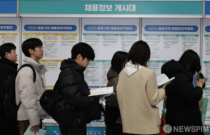 [서울=뉴스핌] 양윤모 기자 = 재정경제부가 주최하는 '2026 공공기관 채용정보박람회'가 27일 서울 양재동 aT센터에서 개막했다. 29일까지 개최되는 이번 박람회는 140여개 기관이 참여하고, 4만여명의 취업준비생이 방문하는 국내 최대 규모의 채용 행사이다. 2026.01.27 yym58@newspim.com