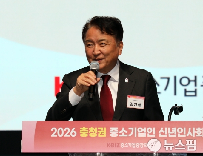 김영환 지사는 27일 오후 대전 유성 호텔ICC에서 열린 '2026 충청권 중소기업인 신년인사회' 축사에서 "대전과 충남이 먼저 행정통합을 선언하면서 특별자치시가 없는 충북은 통합 문제를 놓고 고민이 깊어졌다"며 시선을 끌었다.
