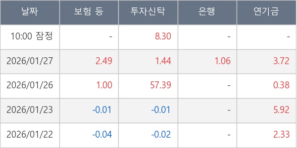 ※ 사모펀드 등 일부 기관의 순매매량은 표시되지 않음