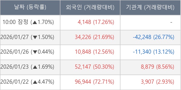 [표] 외국인ㆍ기관 순매매량 (단위 주)
