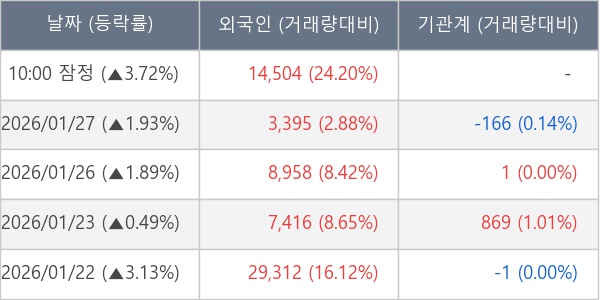 [표] 외국인ㆍ기관 순매매량 (단위 주)