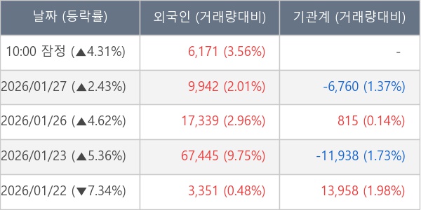 [표] 외국인ㆍ기관 순매매량 (단위 주)