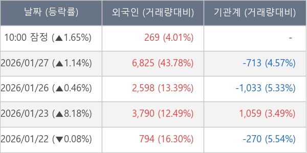 [표] 외국인ㆍ기관 순매매량 (단위 주)