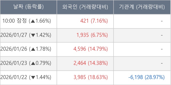 [표] 외국인ㆍ기관 순매매량 (단위 주)