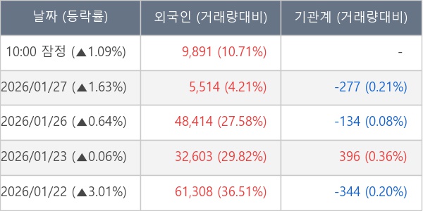 [표] 외국인ㆍ기관 순매매량 (단위 주)