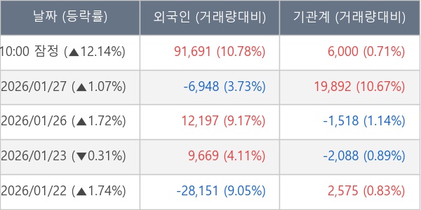 [표] 주요 기관별 순매매량 (단위 주)