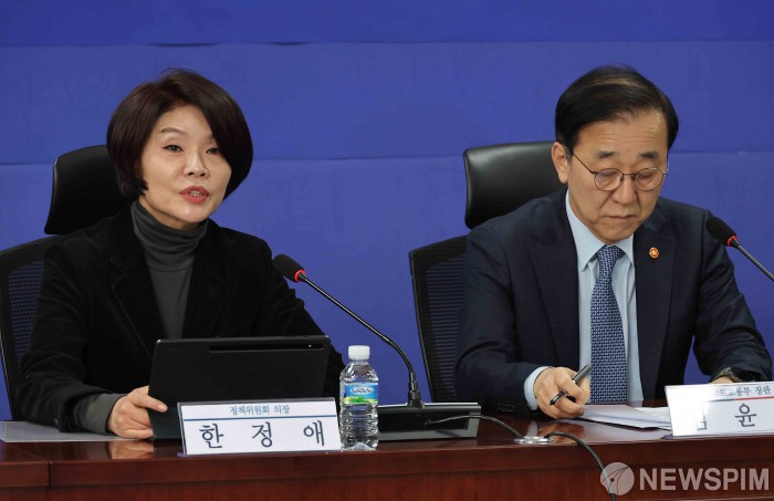 [서울=뉴스핌] 윤창빈 기자 = 한정애 더불어민주당 정책위의장이 29일 서울 여의도 국회 의원회관에서 열린 도심 주택공급 확대 및 신속화 방안 관련 당정협의에서 모두발언을 하고 있다. 2026.01.29 pangbin@newspim.com