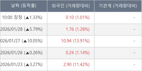 [표] 외국인ㆍ기관 순매매량 (단위 만주)