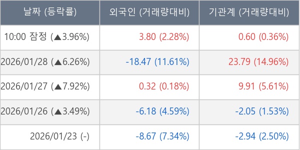 [장중수급포착] 테크윙, 외국인/기관 동시 순매수… 주가 +3.96%