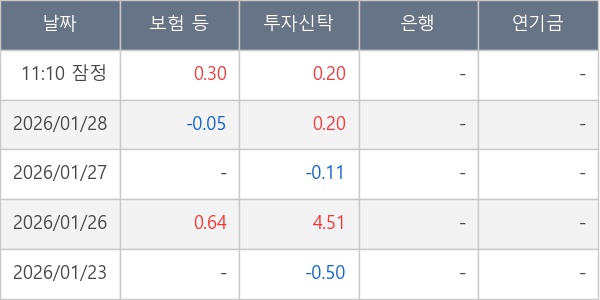 [표] 주요 기관별 순매매량 (단위 만주)