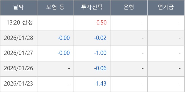 [표] 주요 기관별 순매매량 (단위 만주)