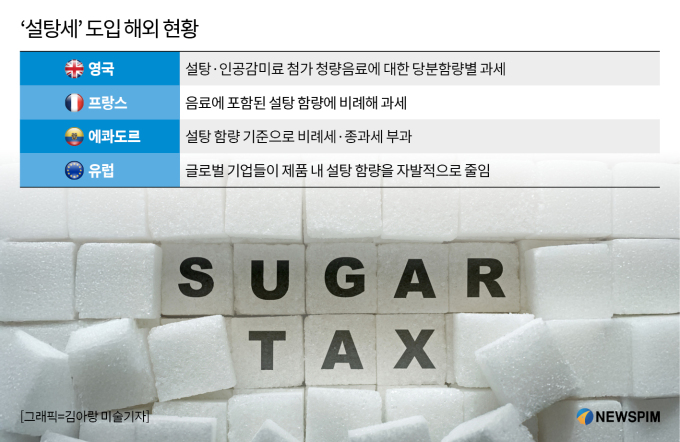 이미 프랑스·영국 등 해외 주요국이 국민 건강 증진을 명목으로 설탕세를 도입하고 있는 만큼, 우리나라도 본격적인 논의에 들어가야 한다는 목소리가 나오고 있다.