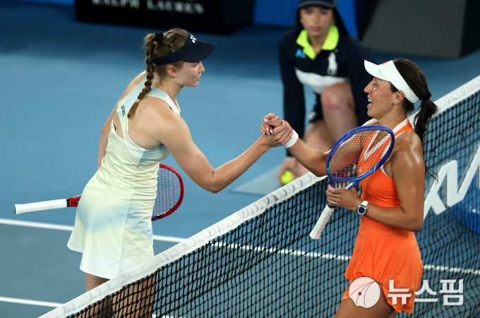 [멜버른 로이터=뉴스핌] 장환수 스포츠전문기자= 엘레나 리바키나(왼쪽)가 29일 한국계 제시카 페굴라와 호주오픈 여자 단식 4강전에서 승리한 뒤 악수를 나누고 있다. 2026.01.29 zangpabo@newspim.com