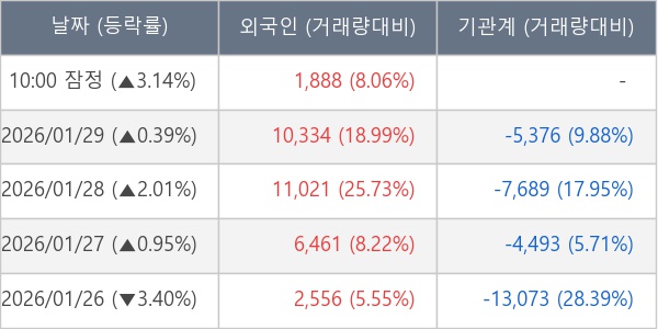 [표] 외국인ㆍ기관 순매매량 (단위 주)