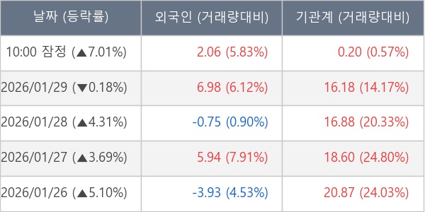 [서울=뉴스핌] 로보뉴스 = 30일 10시 15분 현재 원익QnC(074600)는 전일 대비 7.01% (현재가 29,750원) 상승했고, 기관이 최근 6일 연속 순매수(누적 89.73만 주, 잠정) 행진을 하고 있다.