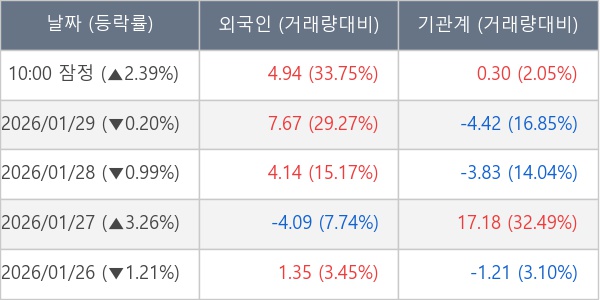[표] 외국인ㆍ기관 순매매량 (단위 만주)