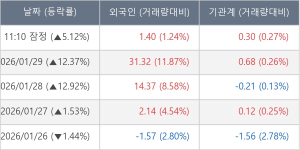 [서울=뉴스핌] 로보뉴스 = 30일 11시 30분 현재 성호전자(043260)는 외국인과 기관이 각각 1.40 만 주, 0.30 만 주 순매수(잠정) 하면서 전일 대비 5.12% (현재가 17,660원) 상승하고 있다.