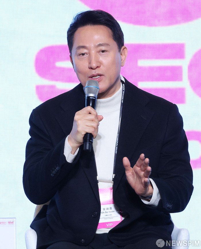[서울=뉴스핌] 정일구 기자 = 오세훈 서울시장이 30일 오전 서울 강남구 코엑스에서 열린 AI SEOUL 2026에서 패널토의를 하고 있다. 2026.01.30 mironj19@newspim.com