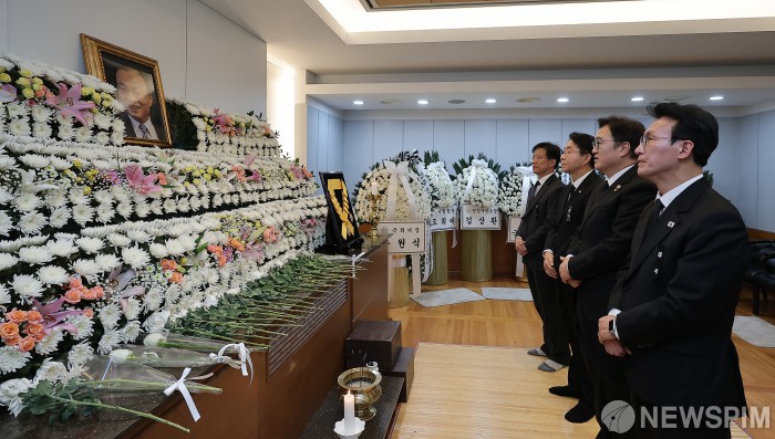 [서울=뉴스핌] 이형석 기자 = 김민석 국무총리와 우원식 국회의장이 31일 오전 서울 종로구 서울대학교병원 장례식장에서 마련된 고(故) 이해찬 전 국무총리의 빈소를 조문하고 있다. 2026.01.31 leehs@newspim.com