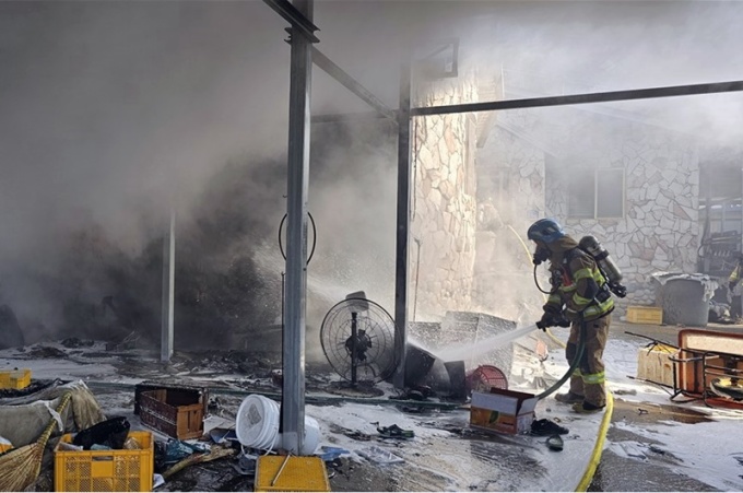 1일 오전 11시 16분쯤 영천시 화남면의 한 창고에서 화재가 났다. '나무더미가 타고 있다'는 신고를 받은 경북소방은 진화 인력과 장비를 급파해 발화 45분 만에 진화했다.