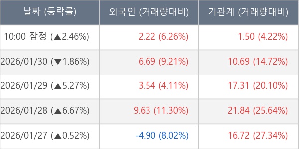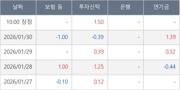 [표] 주요 기관별 순매매량 (단위 만주)