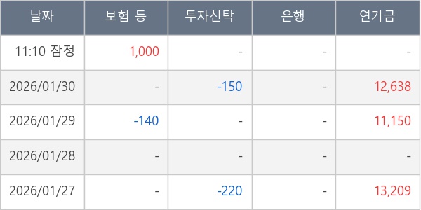 [표] 주요 기관별 순매매량 (단위 주)