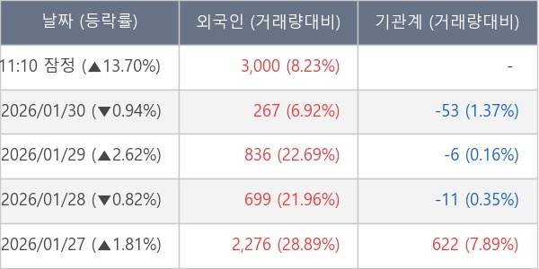 [장중수급포착] 인포바인, 외국인 5일 연속 순매수행진... 주가 +13.70%