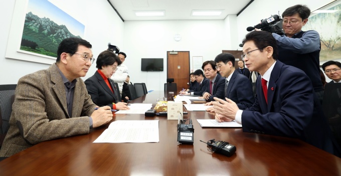 [대구·경북=뉴스핌] 남효선 김용락 기자 = 이철우 경북지사와 김정기 대구시장 권한대행이 더불어민주당 지도부와 면담을 갖고 '행정통합 특별법' 국회 통과를 적극 건의했다.