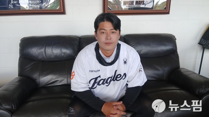 [멜버른=뉴스핌]이웅희 기자=한화 노시환이 멜버른 볼파크에서 훈련을 마치고 인터뷰하고 있다. [사진=한화 이글스] 2026.02.03 iaspire@newspim.com